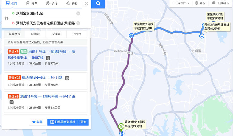 (2)飞机:深圳宝安国际机场——丽枫酒店(深圳光明科学城中山大学地铁站店)