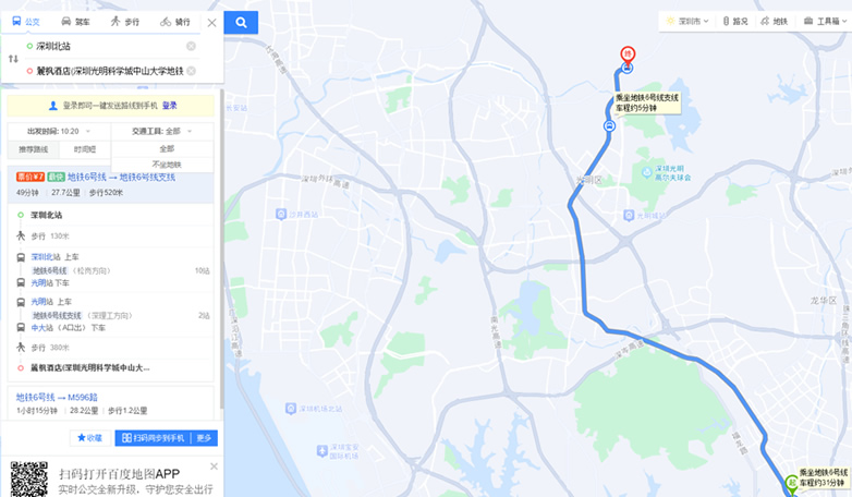 丽枫酒店(深圳光明科学城中山大学地铁站店) | 打车(约1小时) | 约40公里 | |