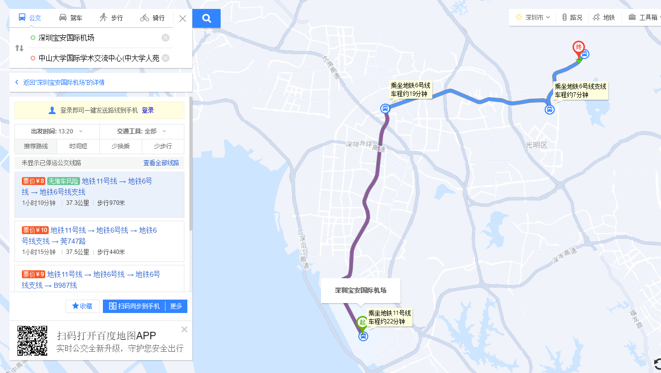 (2)飞机:深圳宝安国际机场——中山大学国际学术交流中心(中大学人苑)