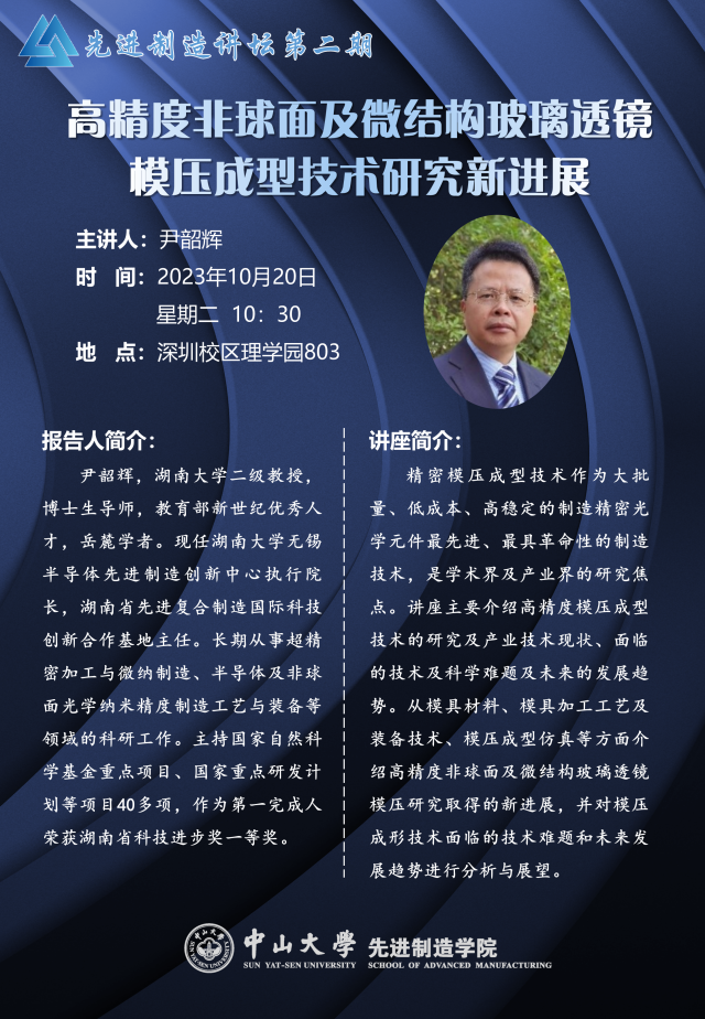 先进制造讲坛第二期|高精度非球面及微结构玻璃透镜模压成型技术研究新进展