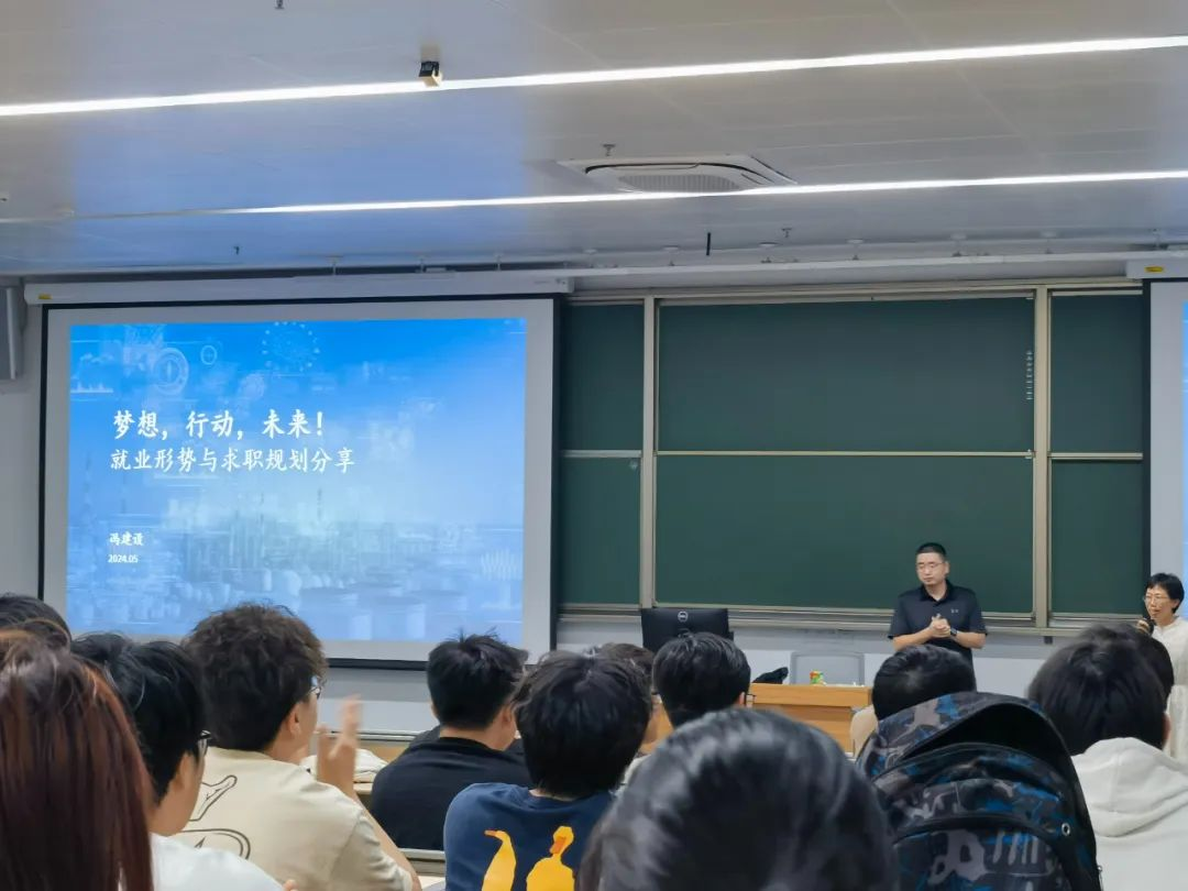讲座中,冯副教授深入分析了当前的就业环境,指出了人才需求质量的提升和供需错配的现状,并提醒同学们保持积极态度,不要被就业焦虑所困扰。