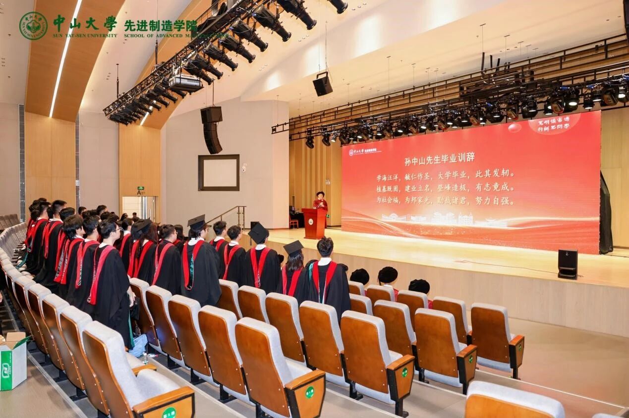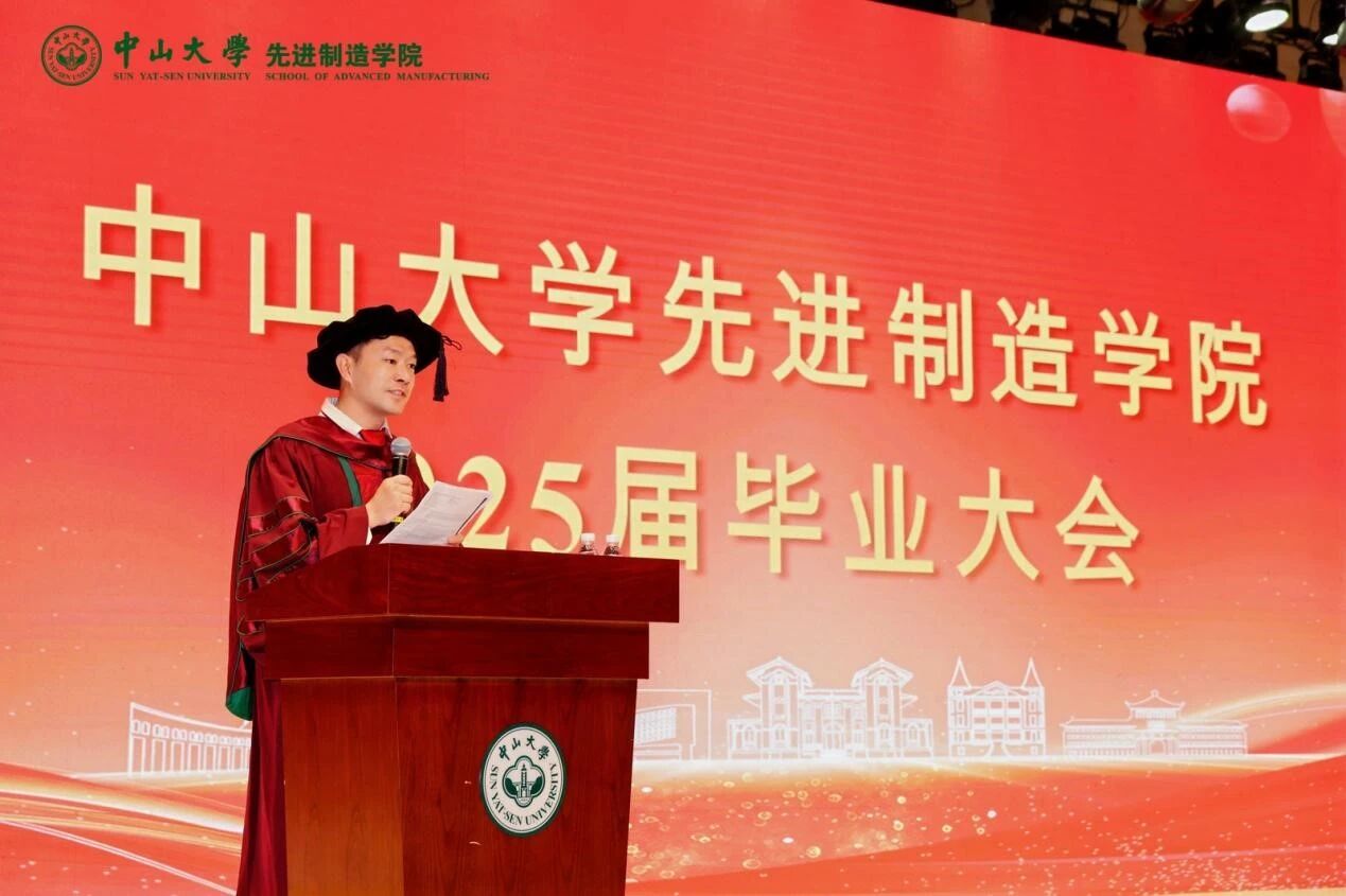 雨初晴,水风清,连日滂沱大雨洗净浮尘。2025年6月18日上午,中山大学先进制造学院首届毕业大会在深圳校区医学园讲学厅隆重举行。学院党委书记戴怡平、院长黄含、党委副书记陈方、副院长吴嘉宁等领导班子及教职工代表,2025届全体毕业生及其亲友们齐聚一堂,共同见证这一难忘时刻。风华正茂的毕业生们即将开启人生新篇章,踏上壮阔新征途。大会由吴嘉宁副院长主持。