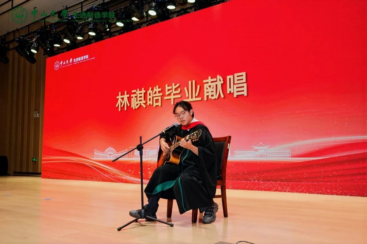 大会在毕业生林祺皓同学倾情演奏的吉他弹唱《时光小偷》中落下帷幕。歌词里藏着图书馆通宵的灯火、课程设计的争论、球赛后的欢呼,弹唱着工科生特有的浪漫;音符为代码与实验交织的青春岁月写下注脚。此刻的深情吟唱,既是对过往的温柔告别,更是整装待发、追逐明日之光的序曲。