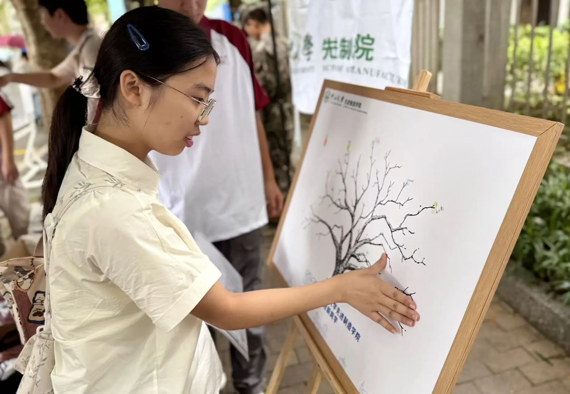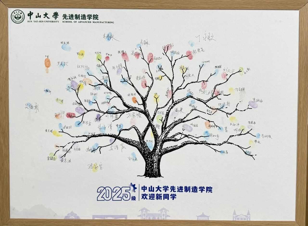 学院准备了指纹创意签到模式,报到的同学都在“树”上留下自己的指纹和签名,从此留下萌芽,在先进制造学院的培养下逐渐长成大树。